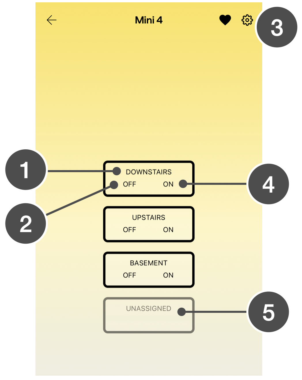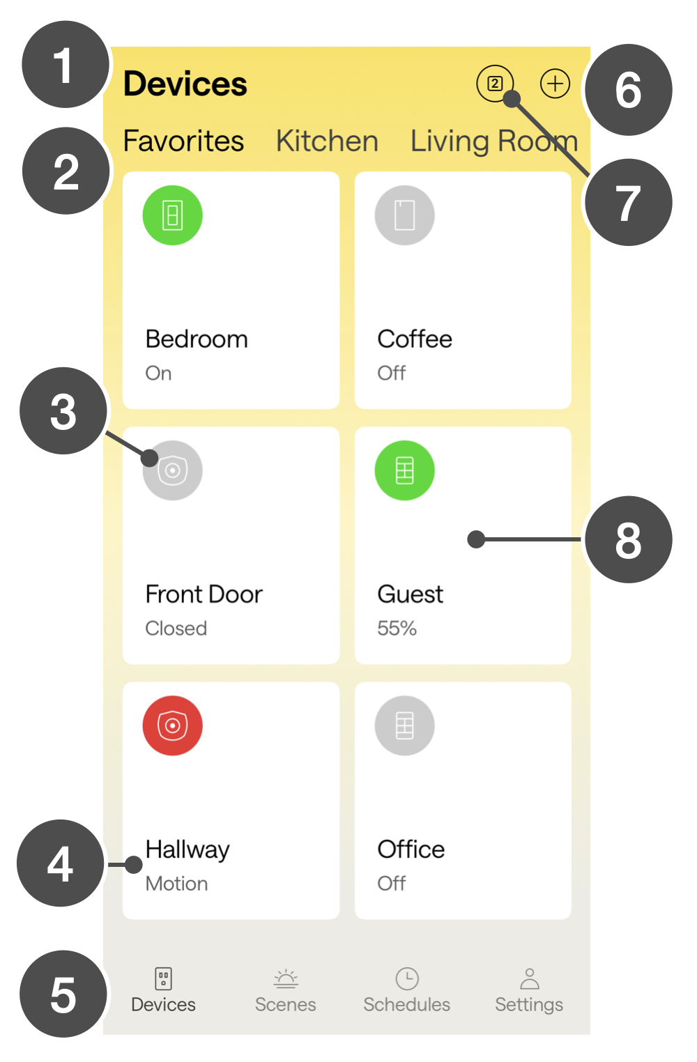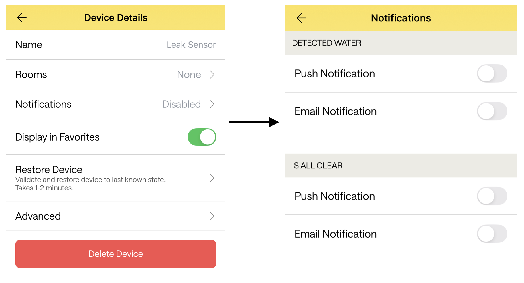 Tap the heart to place the device in Favorites. Tap the gear to view device details and to configure alert notifications. Learn how to enable alerts.