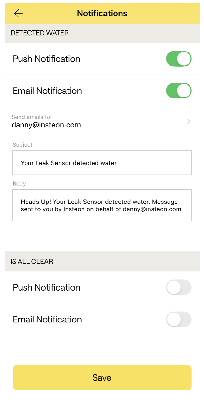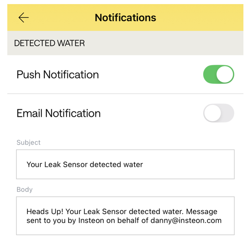 The Insteon Director app can configure sensors to control devices by creating a scene. You can also set up push notifications or email notifications when a sensor is activated.