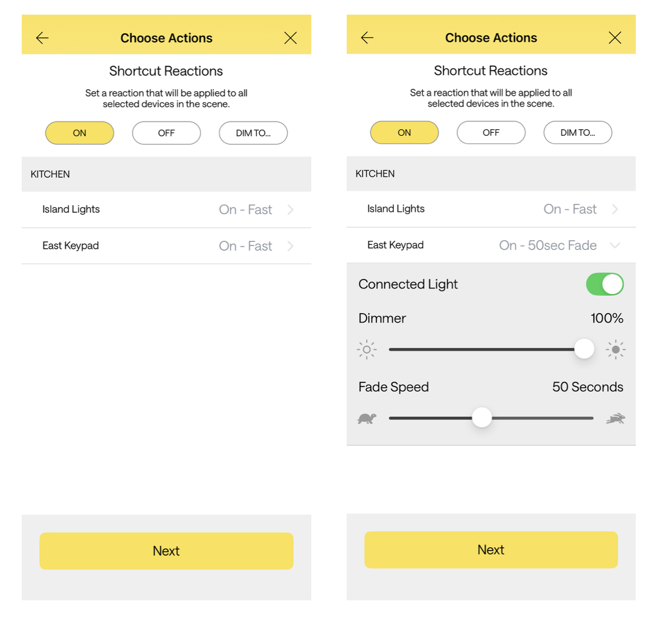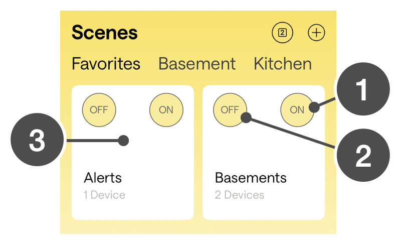 Tap right side of button to turn On (activate) the associated scene.