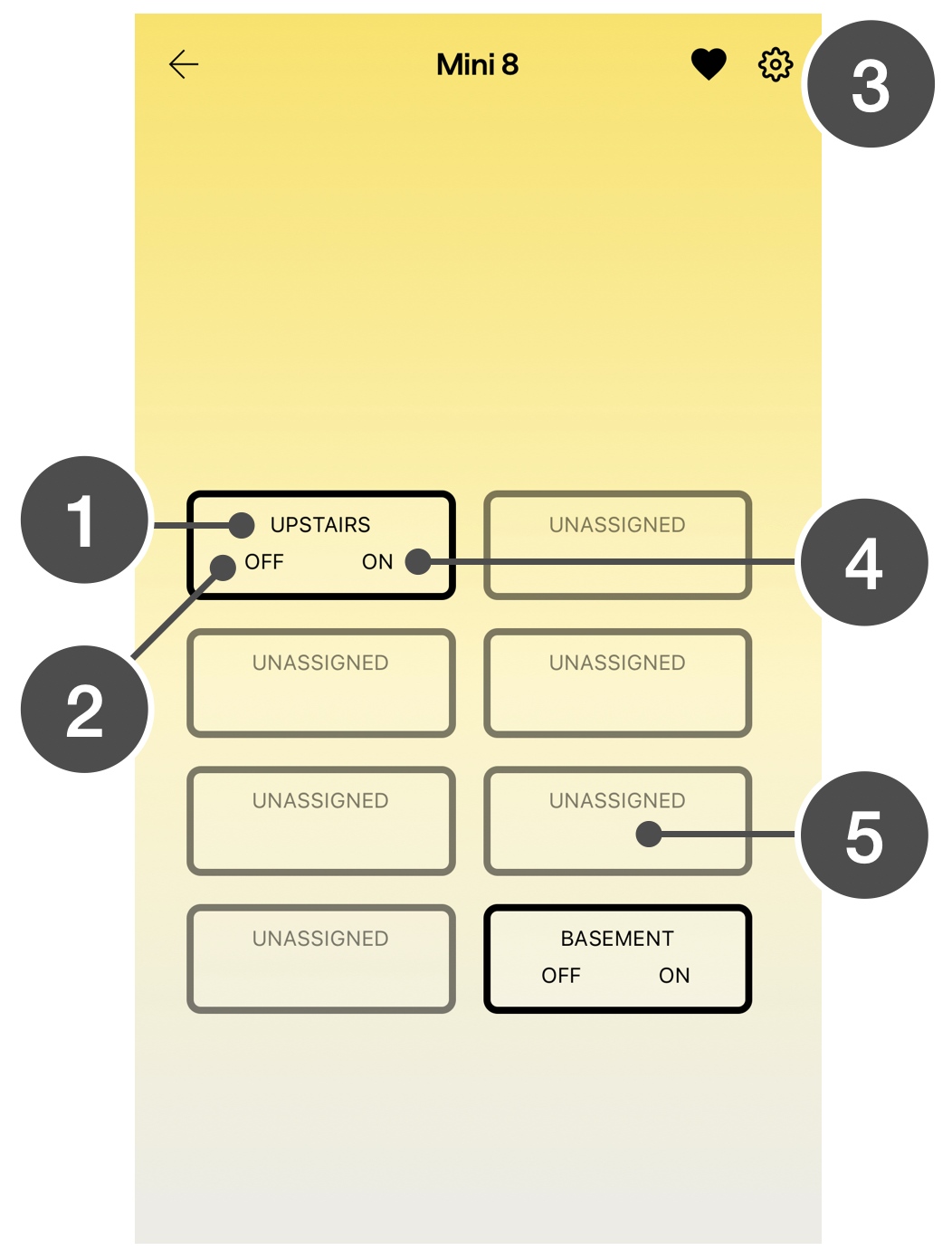 If a button on the Mini Remote is not controlling a scene, it will display “unassigned”.